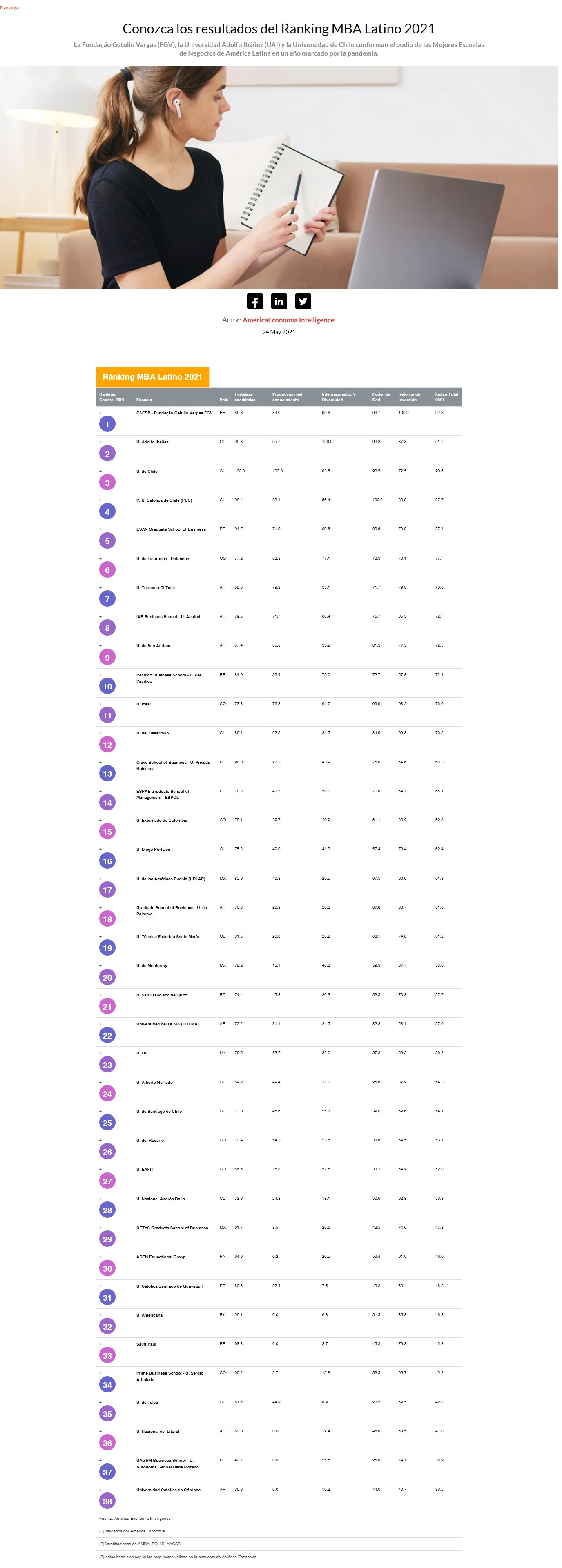 Ranking América Economía 2021