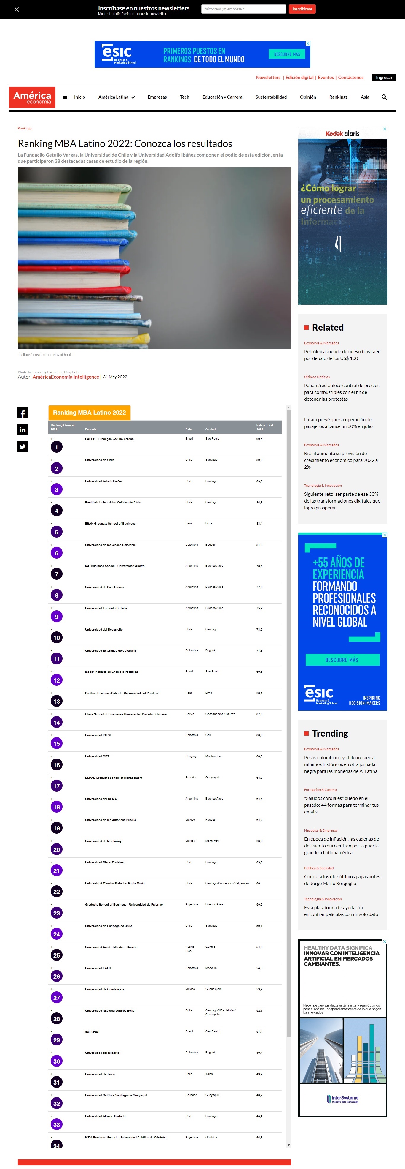 Ranking América Economía 2022