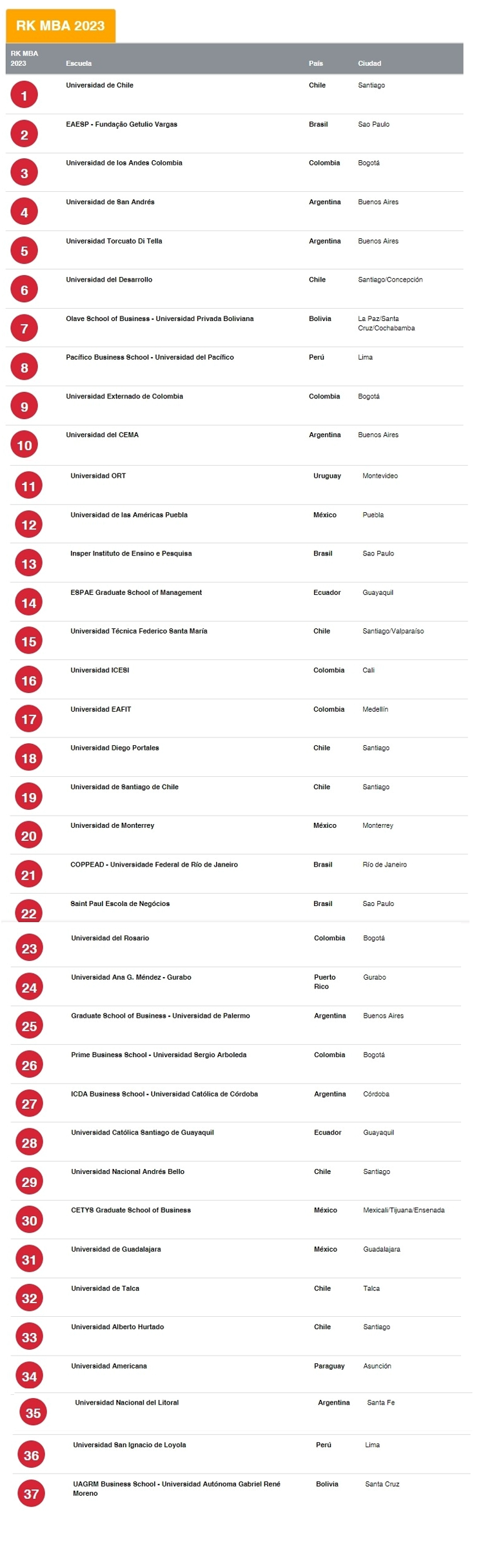 Ranking América Economía 2023